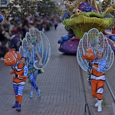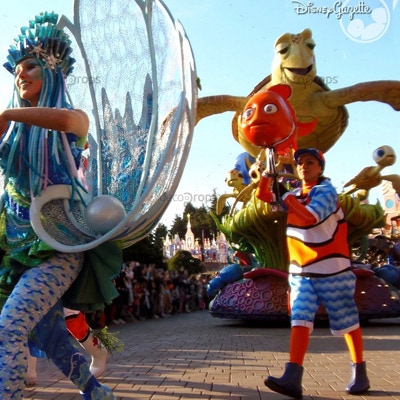 Création de 3 exemplaires de la marionnette NEMO accompagnant le char Crush sur la parade « Stars on Parade » pour 25e anniversaire du parc.