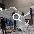 Sculpture en taille directe de polystyrène (envergure +/- 4 mètres). Stade Ornant, Caen, Normandie.