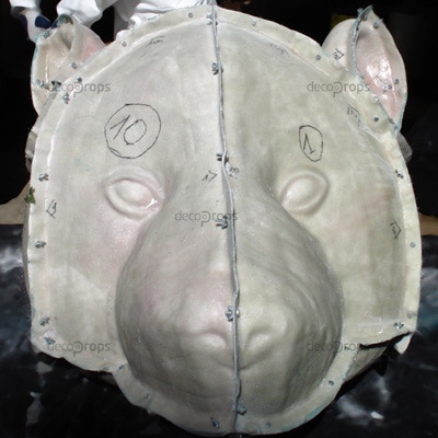 Sculpture d’une tête de panda. Société Labelpeaux, spécialiste du cuir. Enseigne promotionnelle.